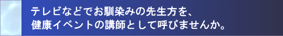 日本テレビの「おもいッきりテレビ」などでおなじみの松原英多、 石川恭三、平石貴久の各先生方の他、お客様の目的やご要望にあった講師を選択、提示いたします。